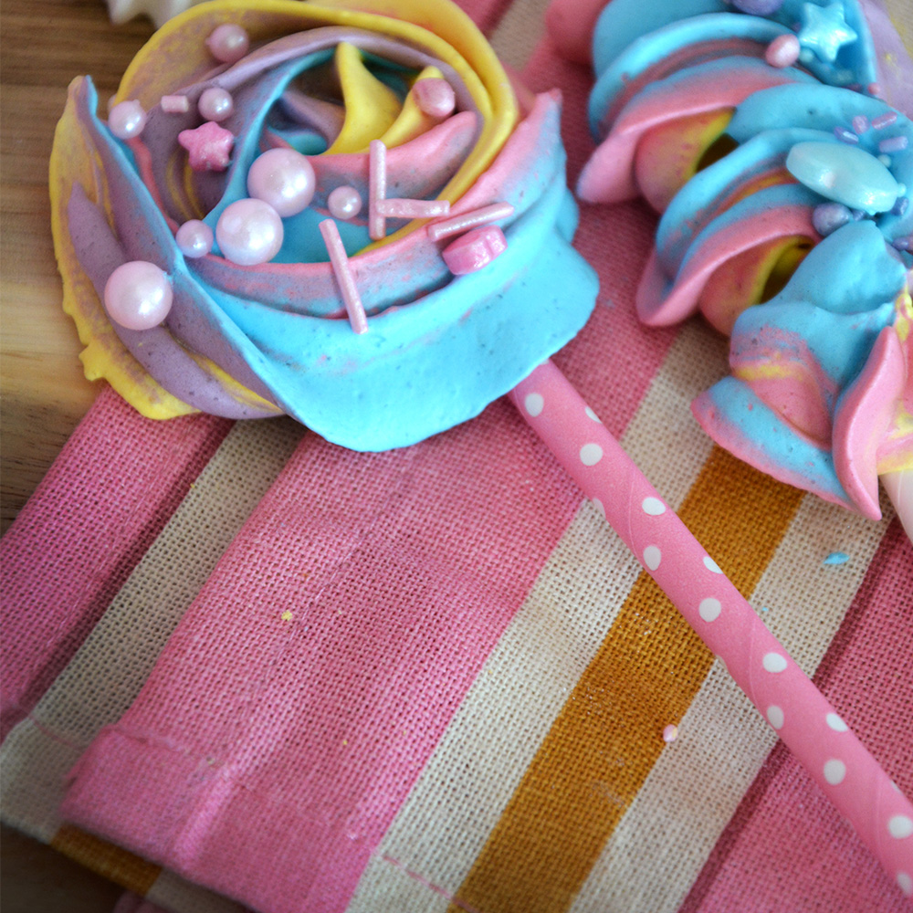 Te kolorowe, bezowe lizaki to prawdziwy hit – idealne na każdą okazję! Gotowe do zjedzenia, wyglądają uroczo i cieszą oko! Do przygotowania masy użyliśmy barwników Food Colours, tworząc cztery żywe kolory. Kolorową masę nakładamy na folię, zwijamy, a następnie przekładamy do worka cukierniczego – dzięki temu kolory pięknie przeplatają się na lizakach. Aby nadać im jeszcze więcej uroku, przed pieczeniem posypujemy lizaki kolorowymi posypkami od Sprinkle It! i Słodkiego Bufetu, które dodają im wyjątkowego charakteru. Każdy lizak osadzony jest na papierowym patyczku – w naszym sklepie znajdziecie mnóstwo wzorów i kolorów, idealnych do bezowych lizaków! Przepis na bezowe lizaki znajdziecie na naszym Instagramie