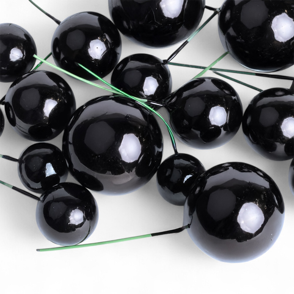 Zestaw czarnych kul do dekoracji tortów pozwalający tworzyć efektowne i unikalne kompozycje. Zestaw zawiera 20 sztuk kul o różnych rozmiarach, wykonanych z tworzywa sztucznego. Kule pełnią wyłącznie funkcję dekoracyjną i nie są przeznaczone do spożycia. Przed ich umieszczeniem w wypieku drucik należy zabezpieczyć woskiem spożywczym lub czekoladą. Czarne kule – doskonałe do dekoracji tortów na osiemnastkę i inne wyjątkowe okazje.