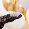 Dekoracja na tort Korona srebrna z różowymi kryształkami 10 cm