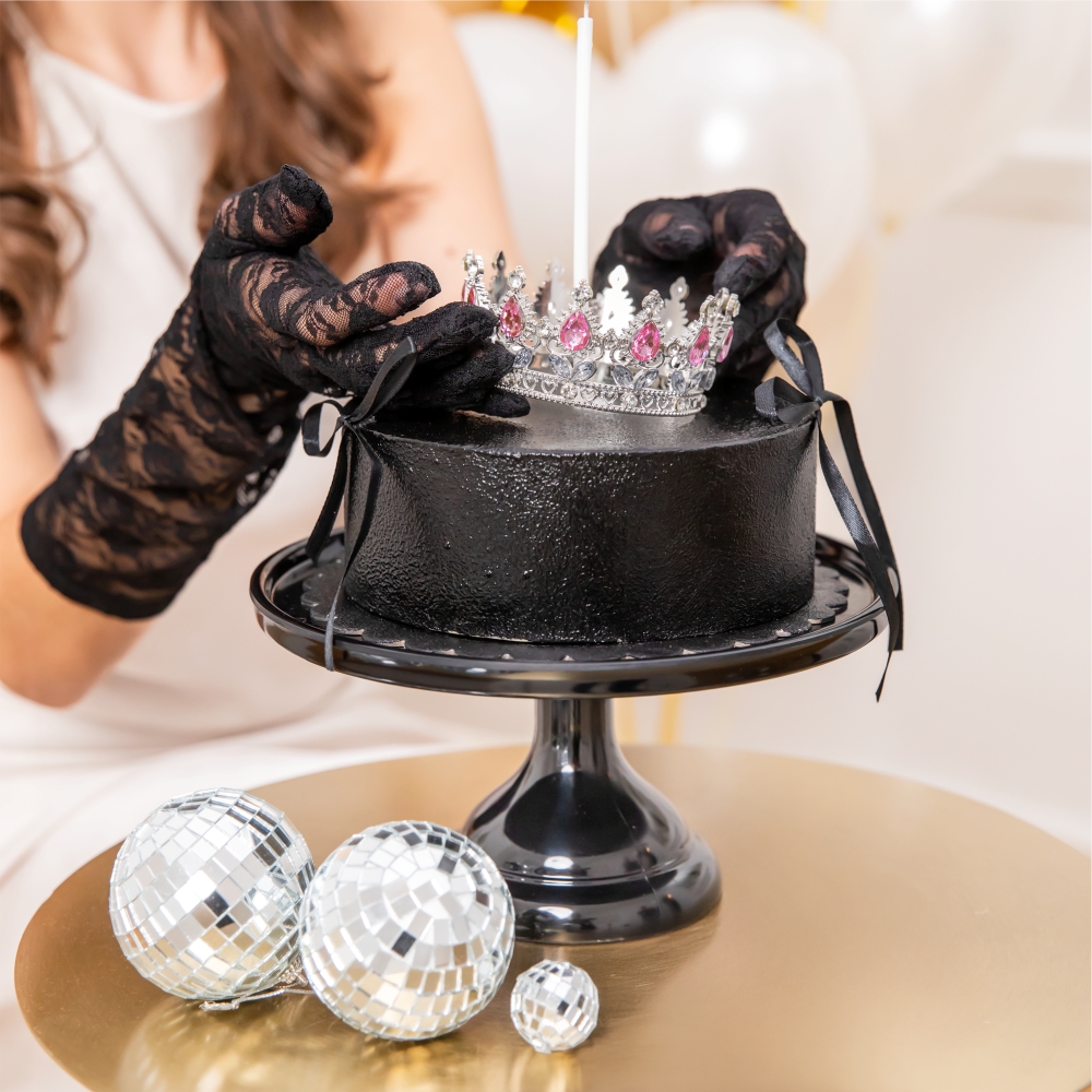 Piękna ozdoba na tort w postaci korony, idealna zarówno dla małych, jak i dużych księżniczek. Produkt wykonany z niezwykłą starannością, łączący w sobie elegancję oraz unikalny design. Korona w kolorze srebrnym z różowymi i srebrnymi kryształkami doda blasku każdemu przyjęciu, podkreślając jego wyjątkowy charakter.