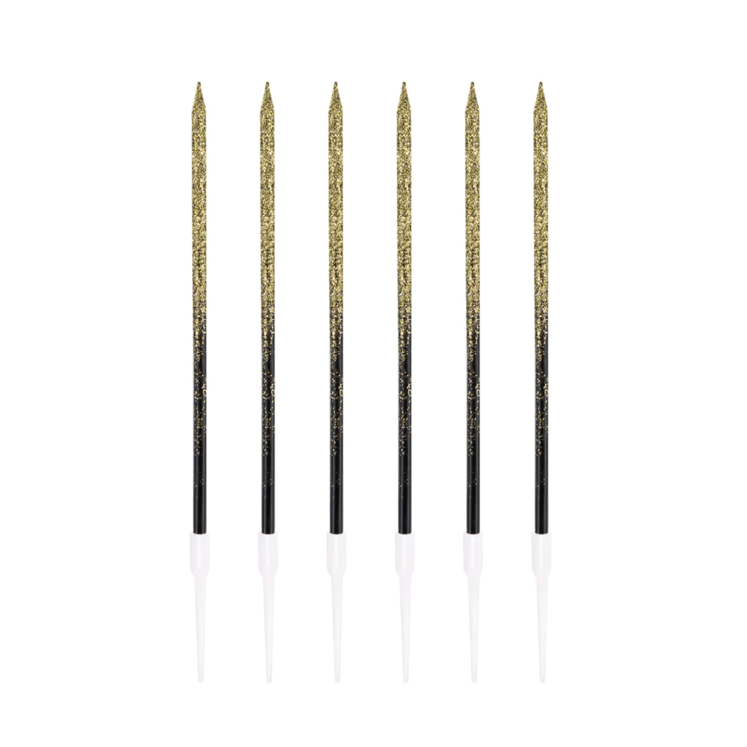 Świeczki urodzinowe czarno-złote z brokatem 6 szt.