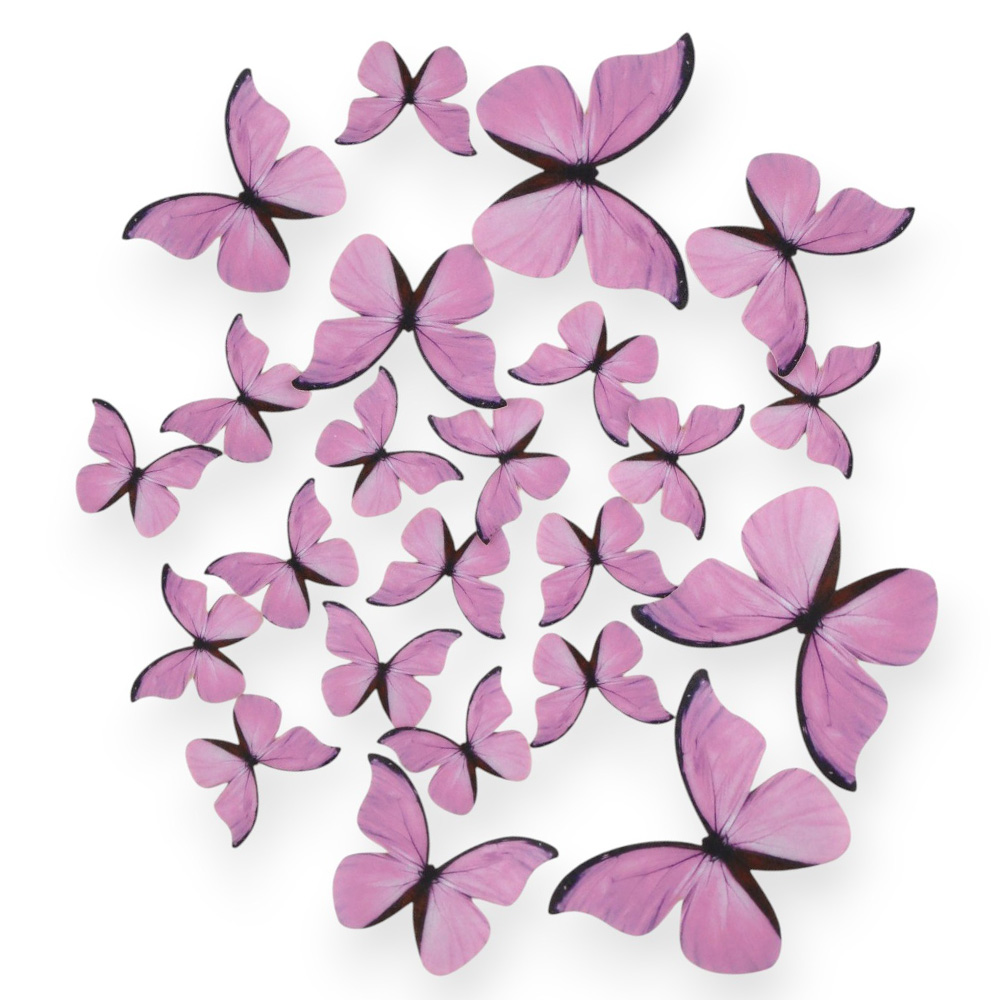 Fioletowe waflowe motylki na tort 23 sztuki