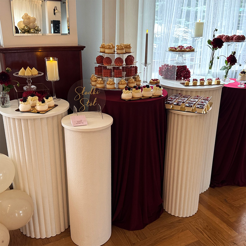 Niewątpliwie oprócz przepięknych deserów na słodkim stole niezwykle istotna staje się ich ekspozycja. W związku z tym stale wzbogacamy asortyment Cake Decor o nowe akcesoria na słodkie stoły. Znajdziesz u nas szeroki wybór pater, ekspozytorów oraz dekoracji, którymi ozdobisz kącik ze słodkościami. Każdy produkt możesz kupić osobno i samodzielnie skomponować swój wymarzony zestaw pater na słodki stół, albo wybrać gotowy komplet stworzony przez nas.