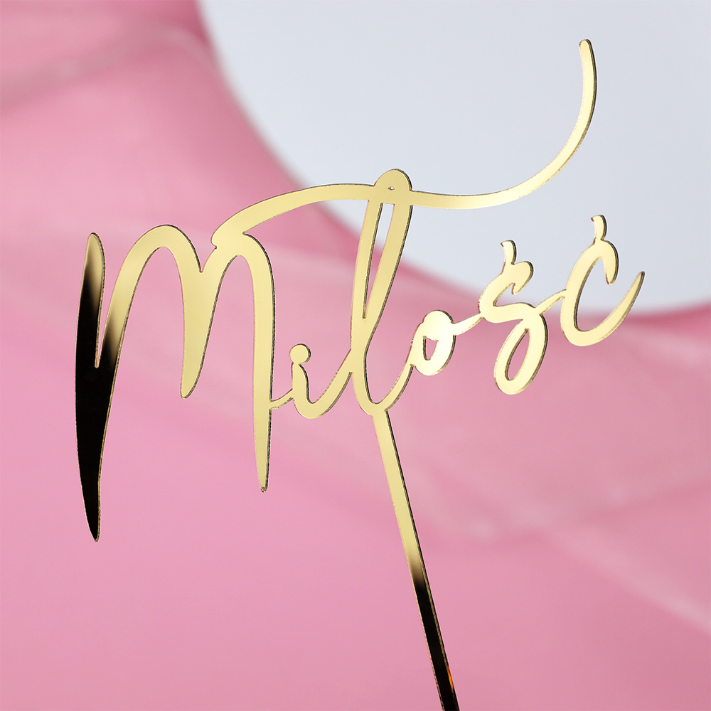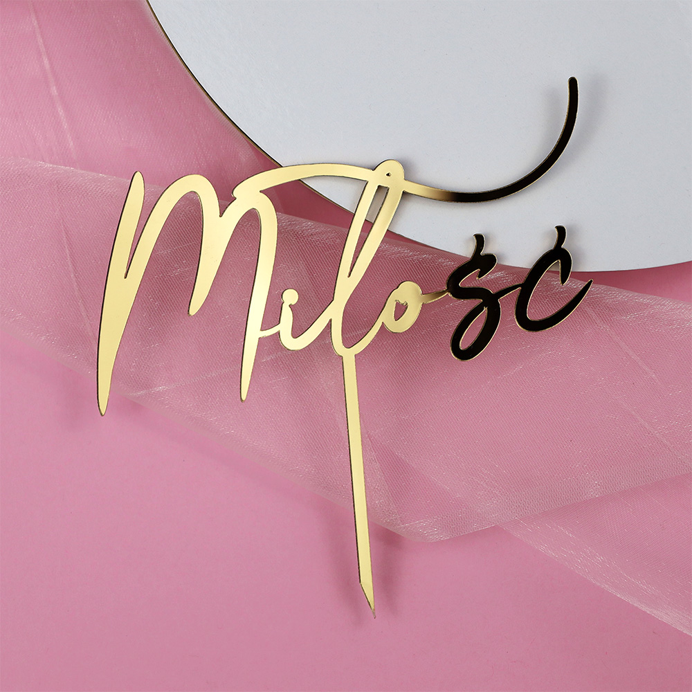 Elegancki topper na tort z napisem miłość to symboliczna ozdoba, która podkreśli wyjątkowy charakter uroczystości. Doskonale sprawdzi się jako dekoracja tortu ślubnego, rocznicowego lub zaręczynowego. Dzięki możliwości personalizacji topper można dostosować do swoich preferencji – wybierając rozmiar, kolor oraz sposób montażu, aby idealnie pasował do tortu i stylistyki uroczystości. Napis na tort ślubny miłość stanie się pięknym dopełnieniem tortu, który z pewnością zachwycie zarówno nowożeńców, jak i wszystkich gości.
