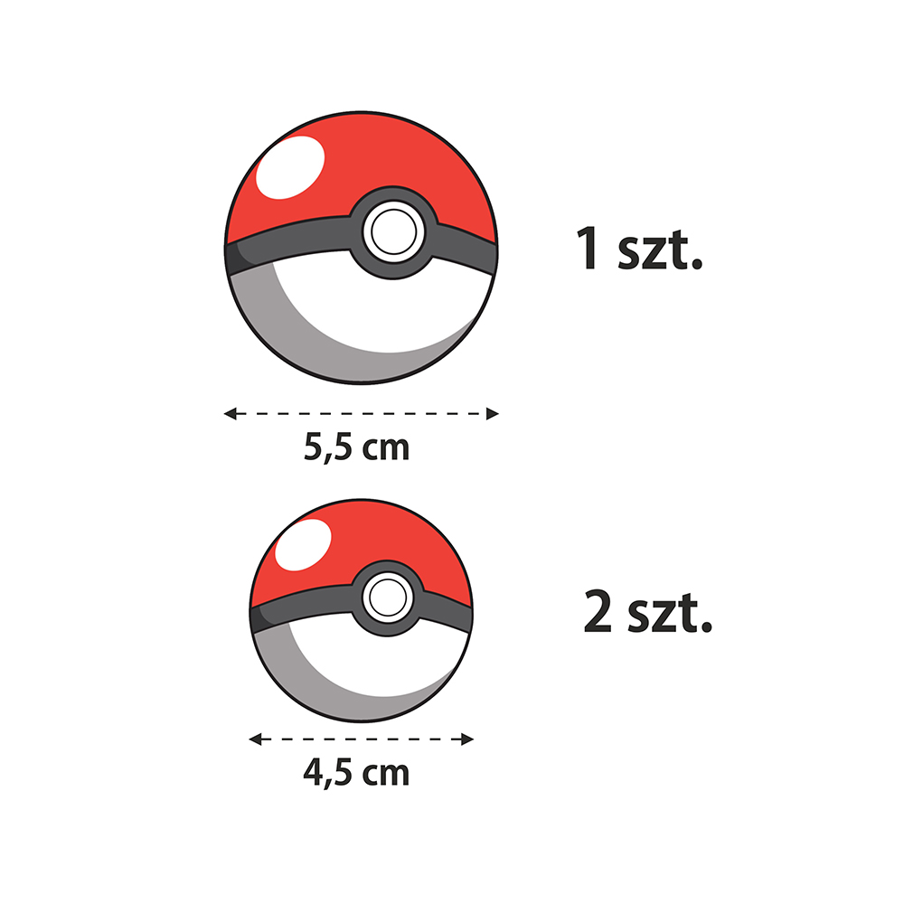 - wymiary: Pikachu: 13×13 cm, Pokeball: 5,5 cm, 4,5 cm