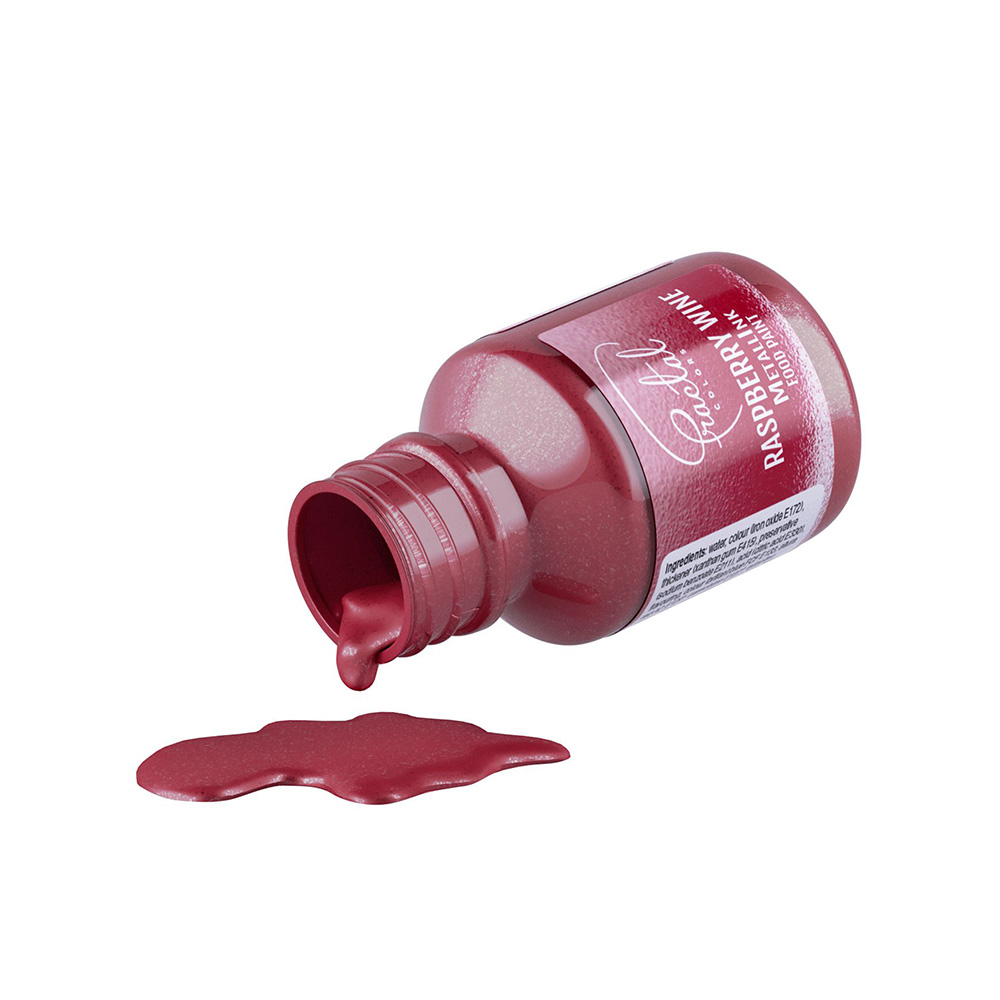 Rubinowa metaliczna farbka spożywcza to zamknięta w małej butelce farba do dekoracji tortów ciast, makaroników i innych słodkości. Farbka spożywcza jest gotowa do aplikacji, nie wymaga rozcieńczania. Przed użyciem należy wstrząsnąć buteleczką, aby wymieszać produkt. Daje ona niesamowity efekt na malowanych powierzchniach, metaliczny połysk, bez smug i prześwitów. Można jej użyć do malowania precyzyjnych wzorów pędzlem lub równomiernego pokrycia większej powierzchni za pomocą gąbki.