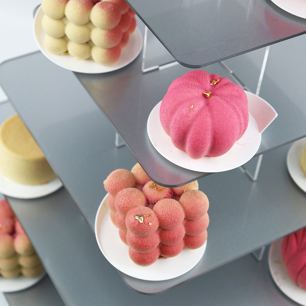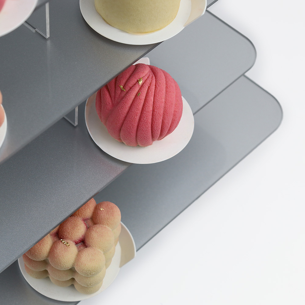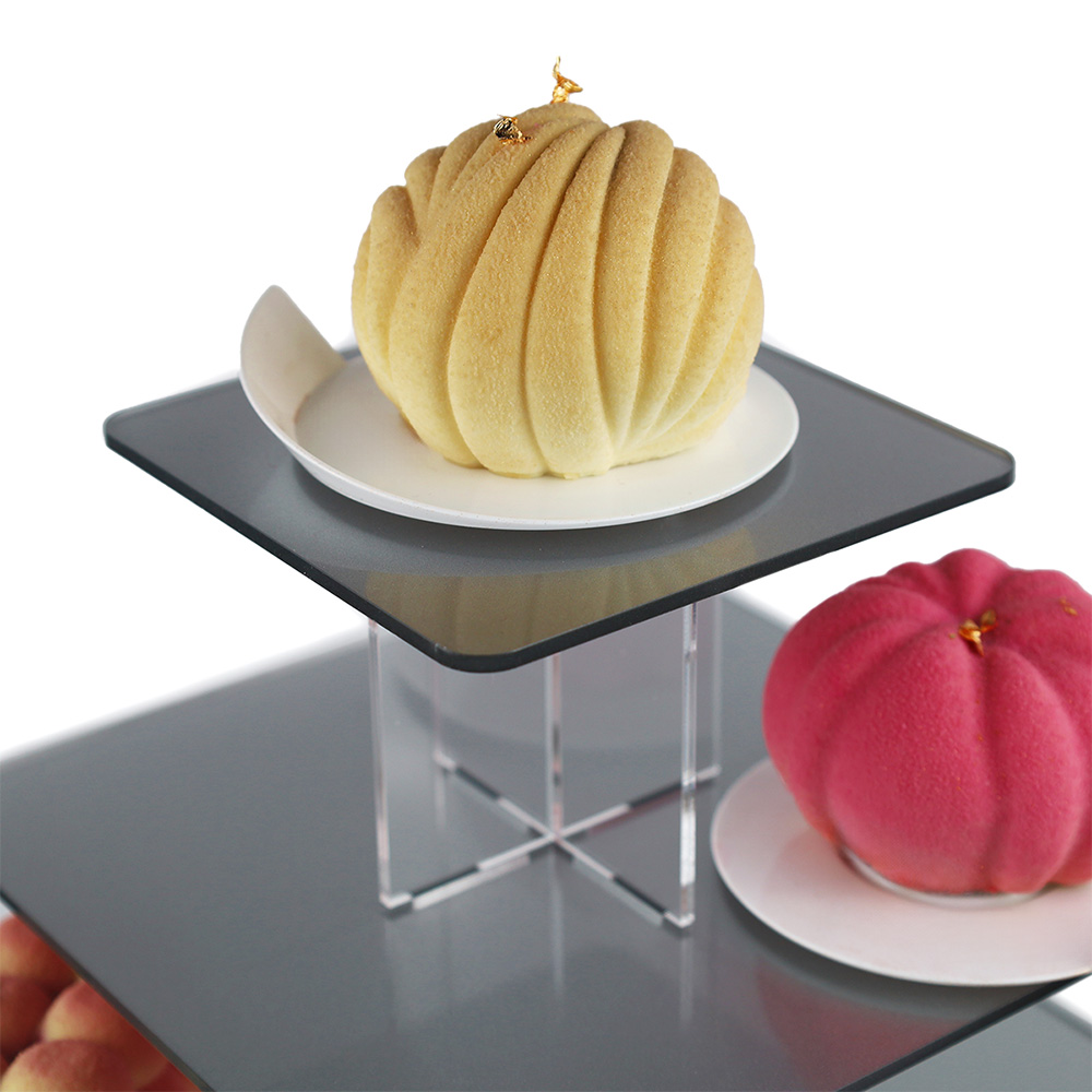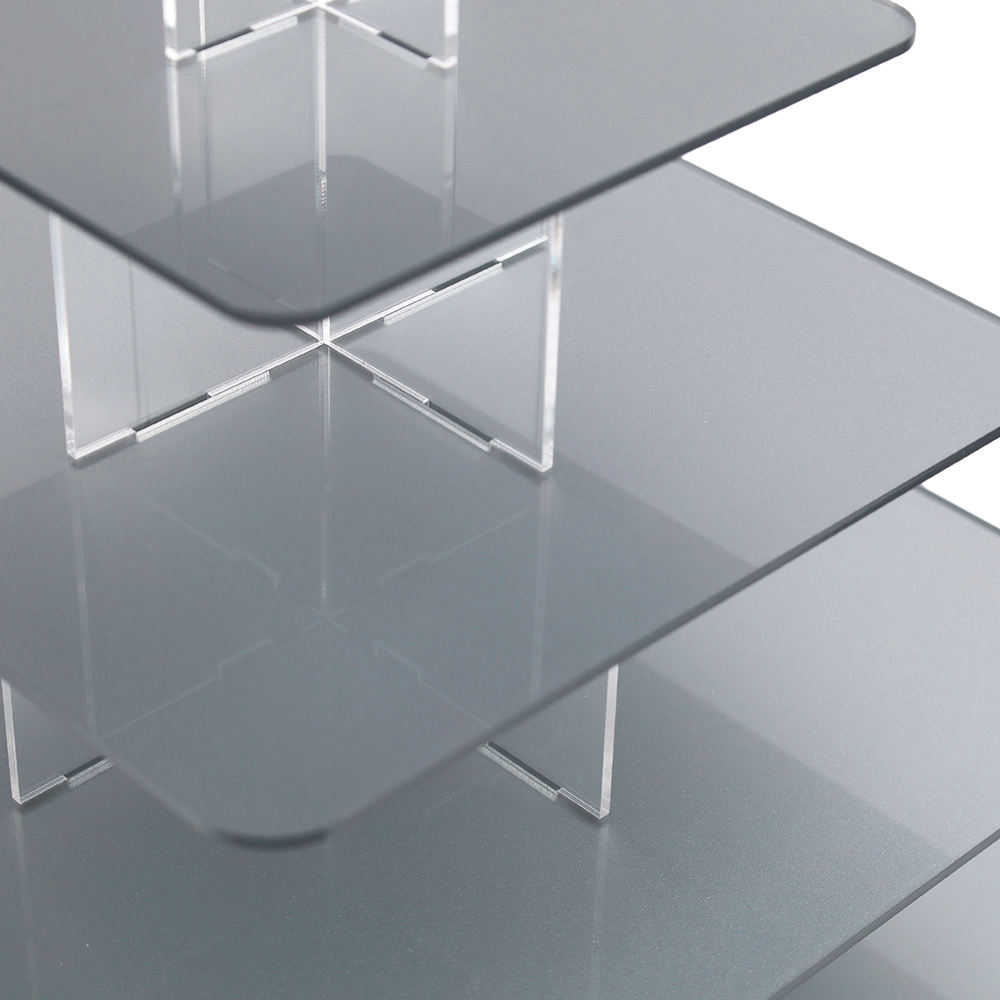 Elegancka i funkcjonalna Srebrna kwadratowa patera na monoporcje 6 pięter wykonana z wysokiej jakości przezroczystej plexi o grubości 3 mm, zaprojektowana z myślą o efektownej prezentacji monoporcji, muffinek, babeczek oraz innych deserów. Dzięki minimalistycznemu, nowoczesnemu designowi doskonale komponuje się z każdym stylem dekoracji, zarówno na przyjęciach, weselach, jak i w witrynach cukierniczych. Konstrukcja umożliwia zmniejszenie liczby pięter,dopasowując ją do ilości serwowanych smakołyków. 6 piętrowy, kwadratowy stojak na monoporcje pomieści około 40 monoporcji na bankietówkach 8 cm.