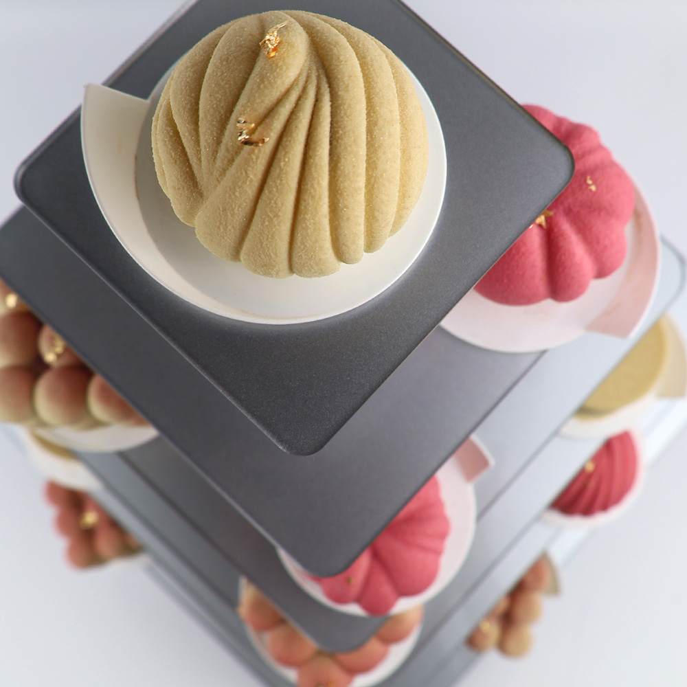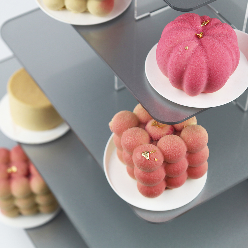 Srebrna kwadratowa patera na monoporcje 6 pięter