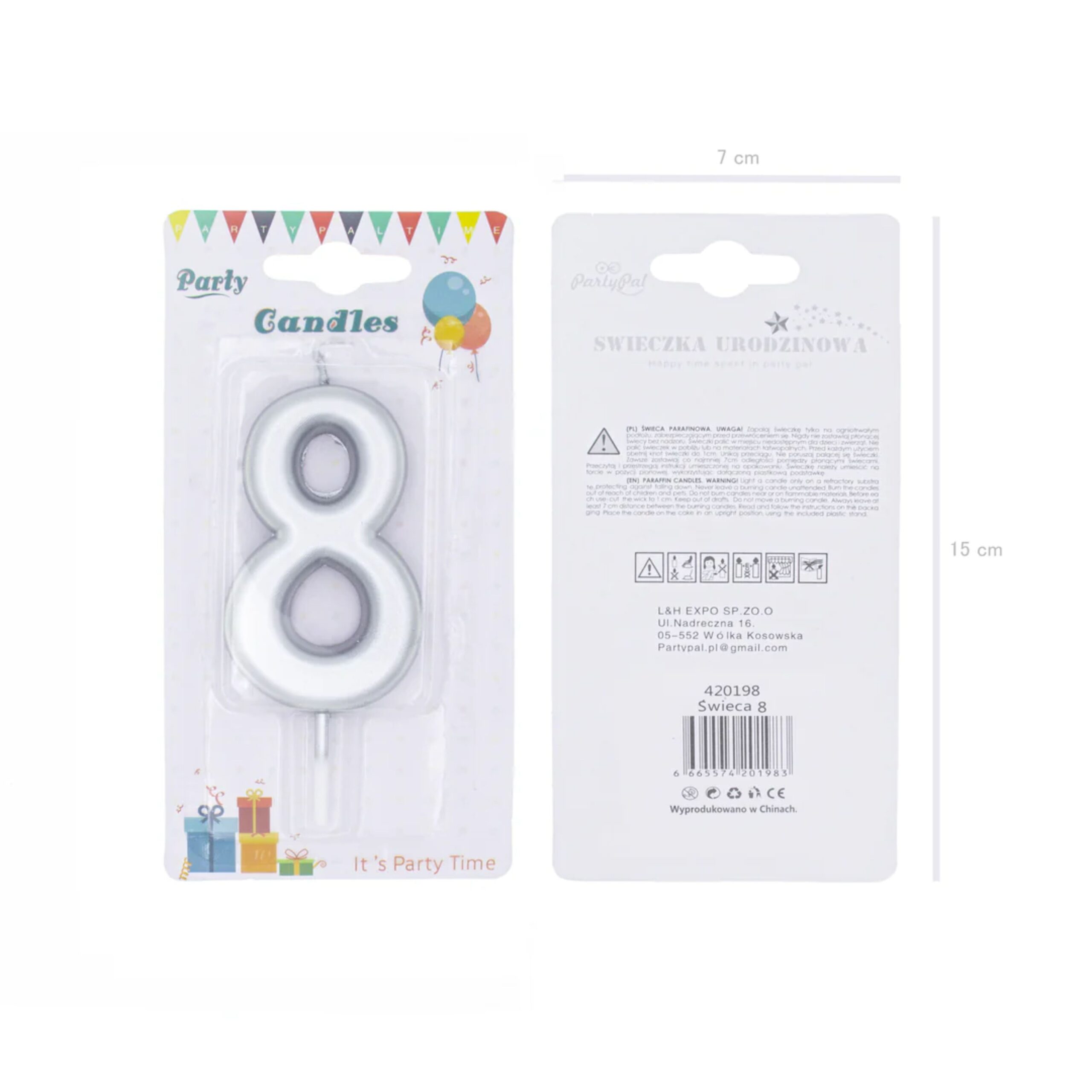 Spraw, by każde urodziny stały się niezapomniane z naszą srebrną świeczką w kształcie cyfry! Elegancki, metaliczny połysk srebrnej świeczki przyciąga wzrok i dodaje wypiekom wyjątkowego charakteru. Wykonana z wysokiej jakości wosku, gwarantuje długie i równomierne płonięcie. Świeczka na praktycznej nóżce, którą z łatwością wbijesz w tort. Srebrna świeczka jest idealna na każdą okazję, nie tylko na urodziny ale także na rocznice ślubu. Doskonale komponuje się z różnymi motywami uroczystości, od boho przez glamour, po dziecięce, bajkowe przyjęcia. W naszym sklepie znajdziesz świeczki cyfry w kolorze srebrnym od 0 do 9. Spraw, by każde urodziny stały się niezapomniane i dodaj odrobinę blasku do urodzinowego tortu!