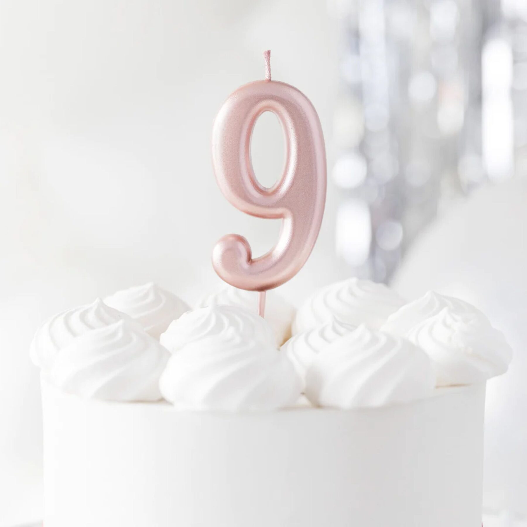 Świeczka urodzinowa w kolorze rose gold cyfra 9