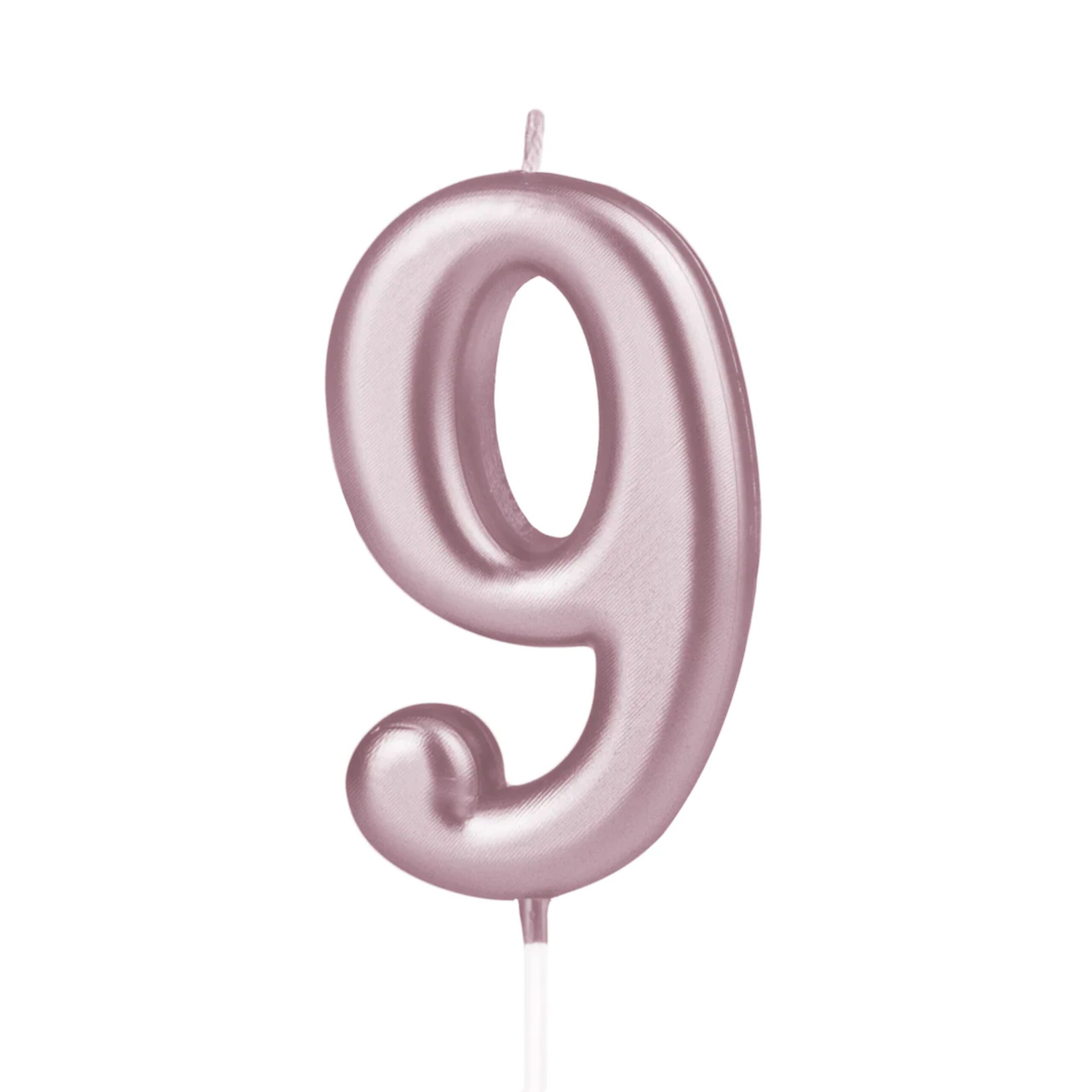 Świeczka urodzinowa w kolorze rose gold cyfra 9