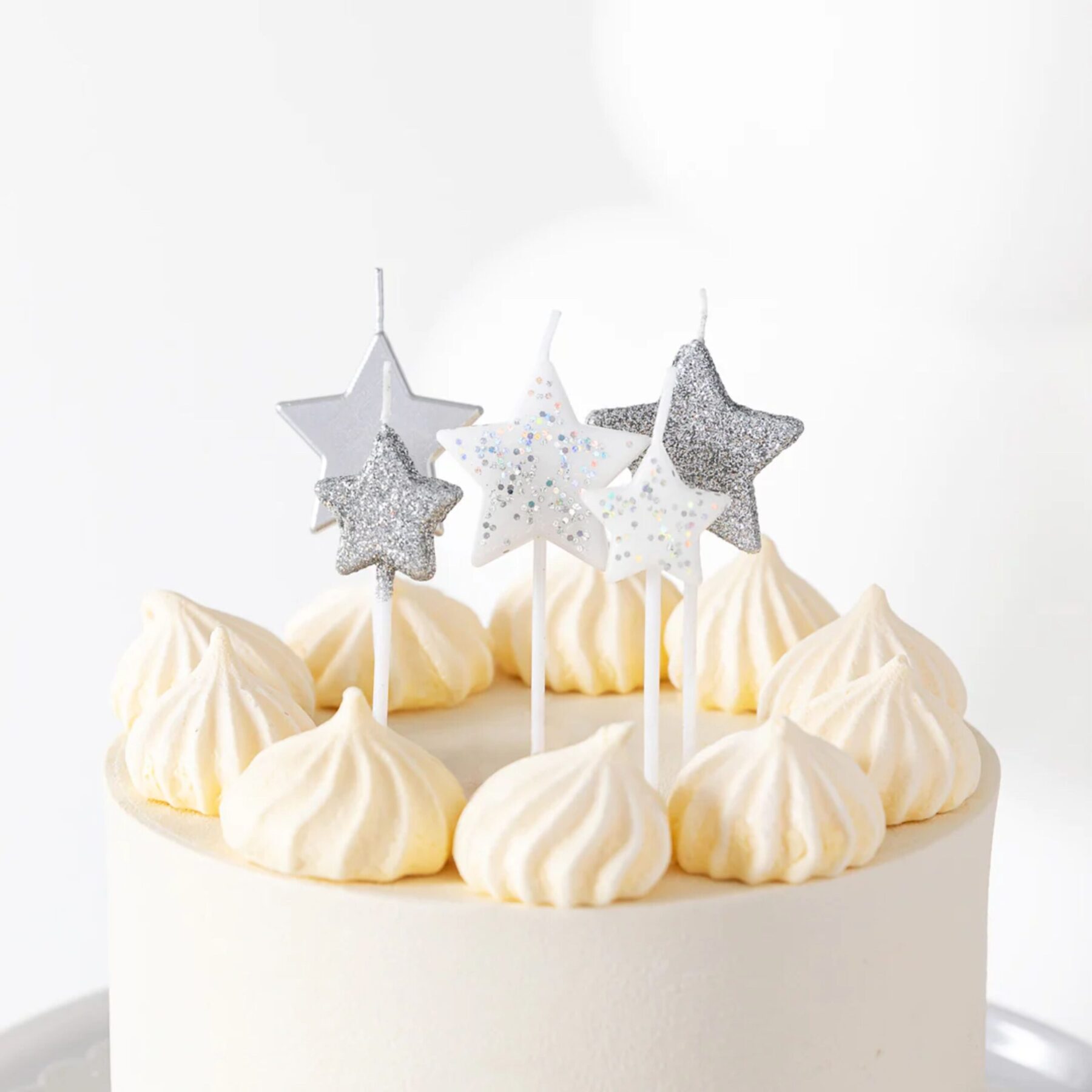 Świeczki na tort srebrne gwiazdki zestaw 5 sztuk