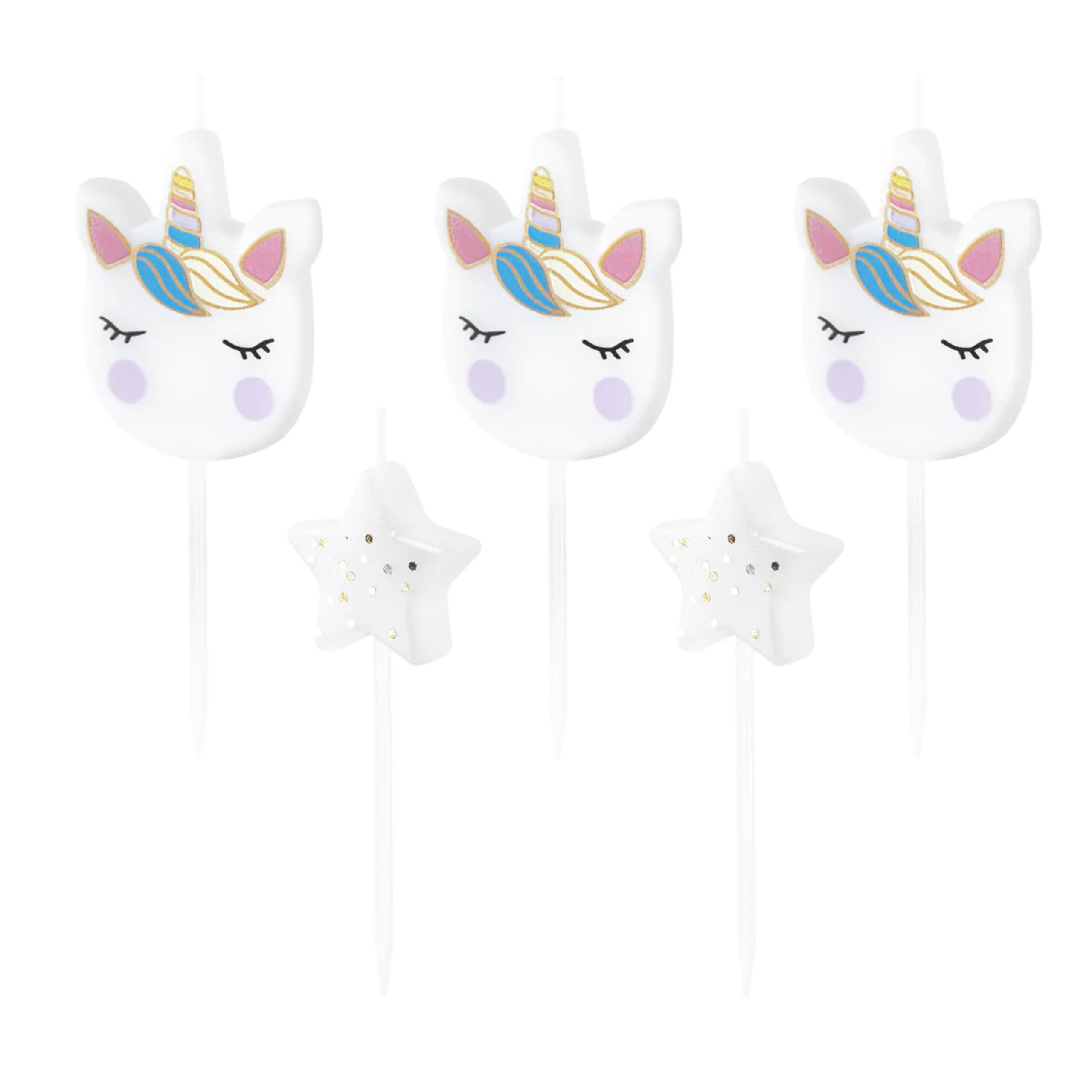 Home / Sklep / DEKOROWANIE / Świeczki urodzinowe / Świeczki urodzinowe jednorożce i gwiazdki 5 sztuk