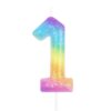 Tęczowa świeczka urodzinowa z brokatem cyfra 1