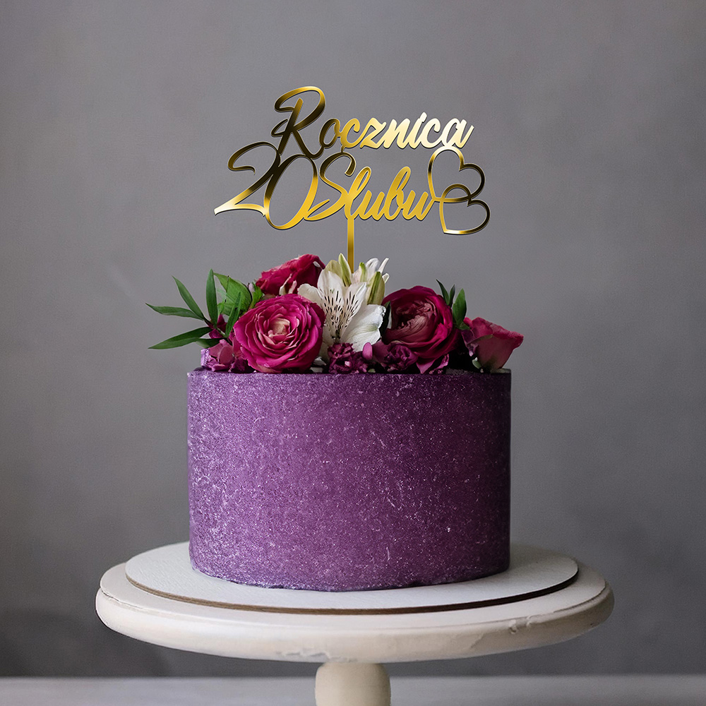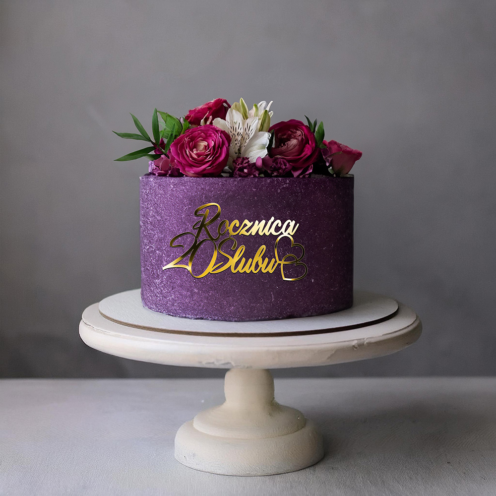 Twórz niezapomniane wypieki na wiele okazji. Rocznica ślubu zasługuje na wyjątkową oprawę. Aby podkreślić charakter tej chwili oferujemy topper rocznica ślubu z serduszkami oraz liczbą. Nasze toppery idealnie dopasujesz do stylu przyjęcia i wyglądu tortu. Dzięki indywidualnemu topperowi – to ty podajesz liczbę jaka ma znaleźć się na topperze, Twój tort nabierze wyjątkowego charakteru. Niech tort stanie się prawdziwym symbolem tej uroczystości – elegancki, pełen klasy i odzwierciedlający Waszą wspólną historię. Ozdobę na tort możesz umieścić na szczycie, lub ozdobić nim bok wypieku. Wszystko po to, by podkreślić piękno Waszej rocznicy.
