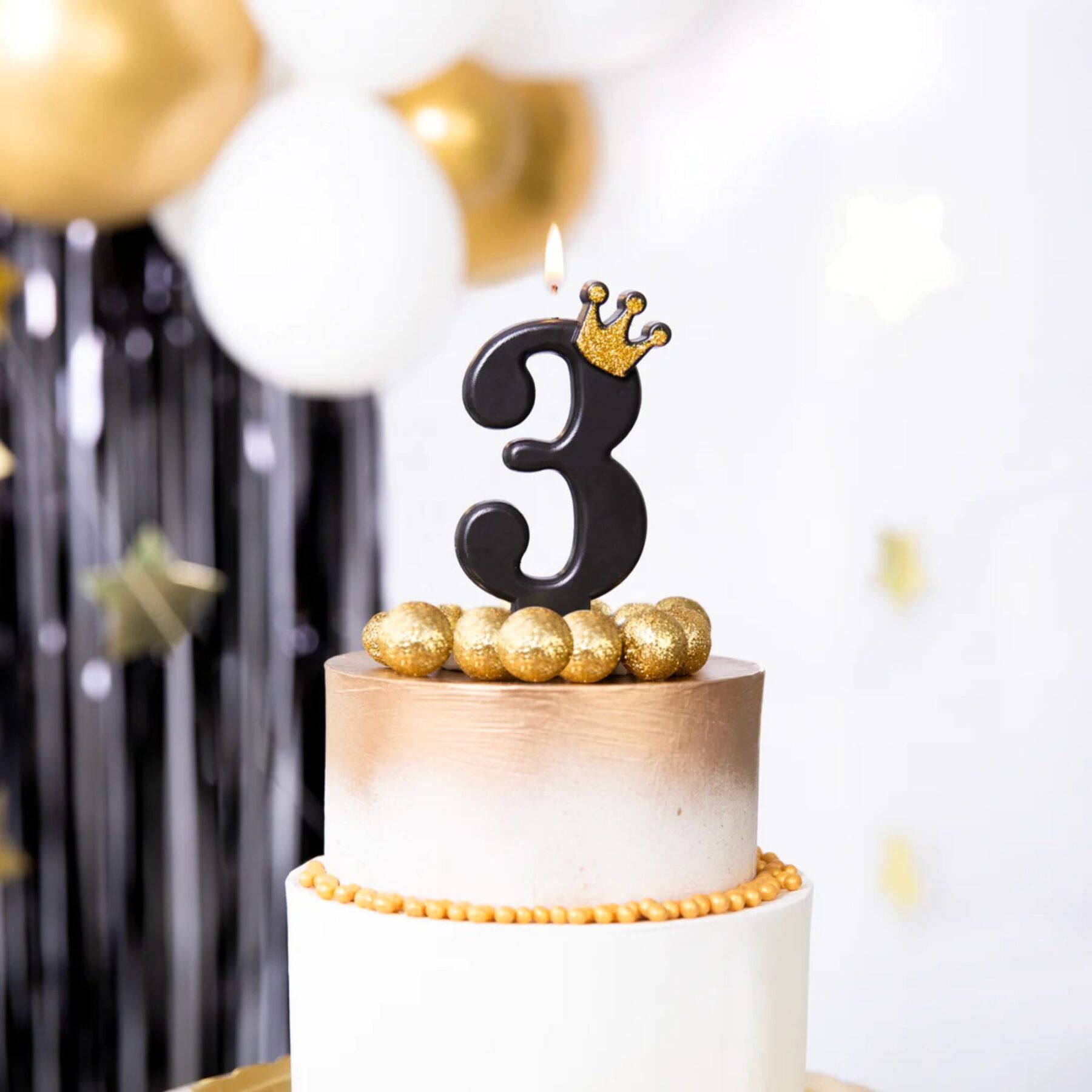 Urodzinowa czarna świeczka z koroną cyfra 3