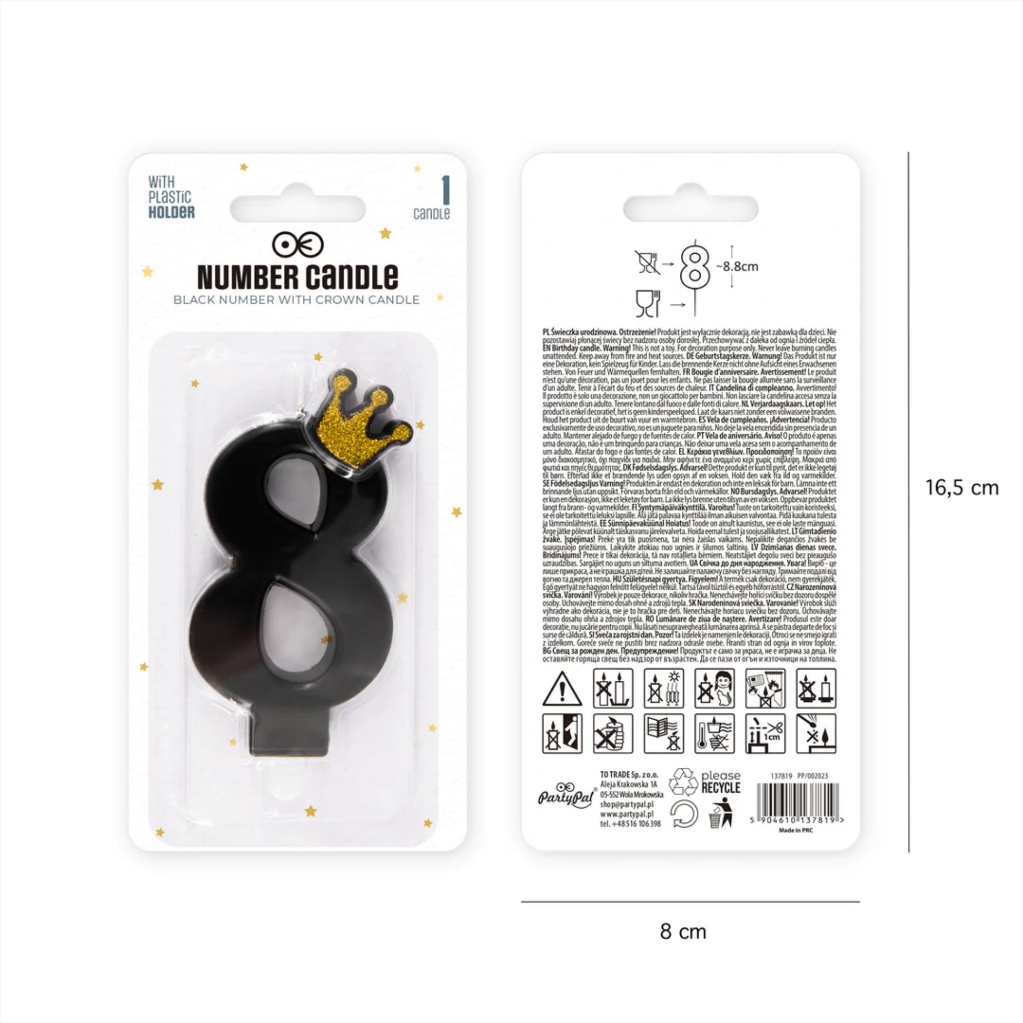 Urodzinowa czarna świeczka z koroną cyfra 8